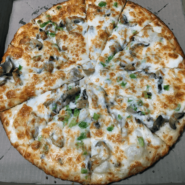 Our specialty Philly Steak Pizza comes with Ranch, Philly Steak, Onions, Green Peppers, Mushrooms, and Mozzarella!